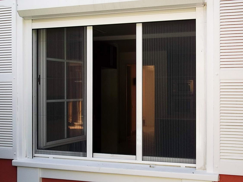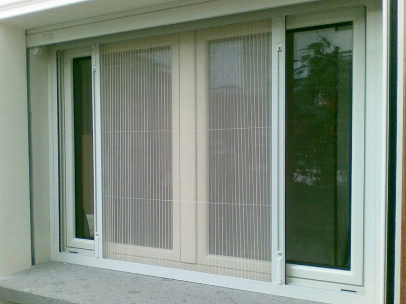 Конструкция плиссе функционирует по аналогии с гармонью. Секции сетки можно передвигать как вертикально, так и горизонтально, в зависимости от вариации установки. Подобная модель может перекрывать оконные или дверные проемы до 5 метров шириной и 3,5 метров высотой.