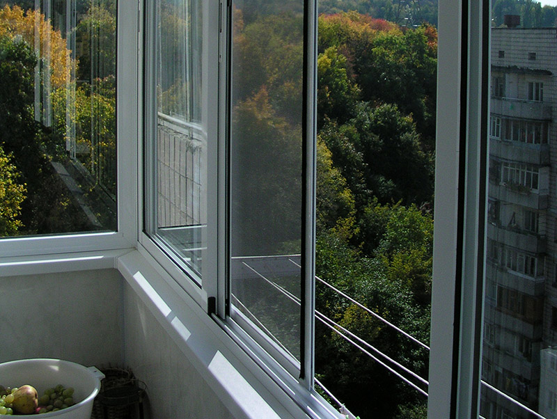 - С возведением новых пазов - наиболее распространенный. С внутренней стороны профиля присоединяются направляющие, в которые вставляется рама. Особенно удобно, что на зимний период нет необходимости ее демонтировать.