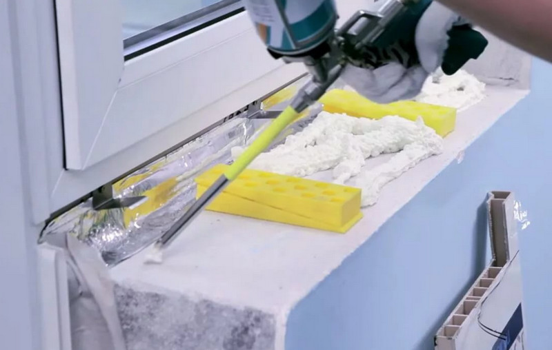 При установке пластиковых подоконников используется монтажная пена, которая обеспечивает надежную защиту от проникновения влаги внутрь помещения.
